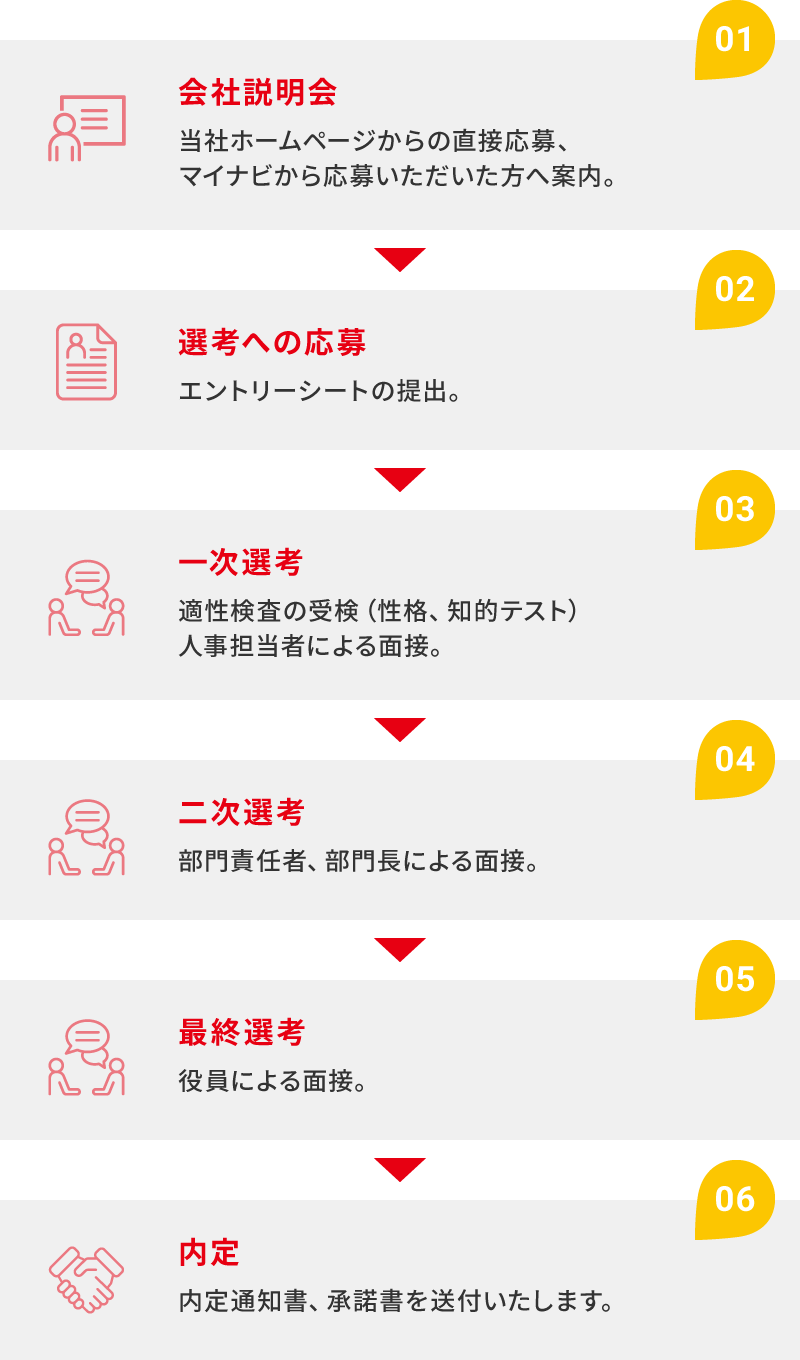 書類選考、適性試験、面接